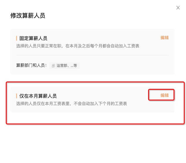2.如果最后工作日小于当前算薪周期,离职人员需要手动添加,添加方式如下: